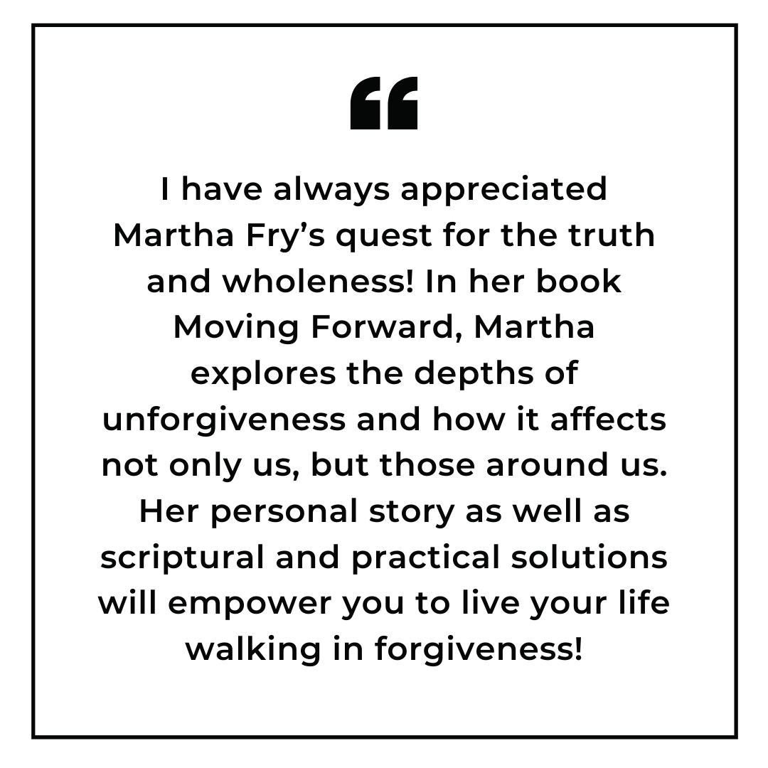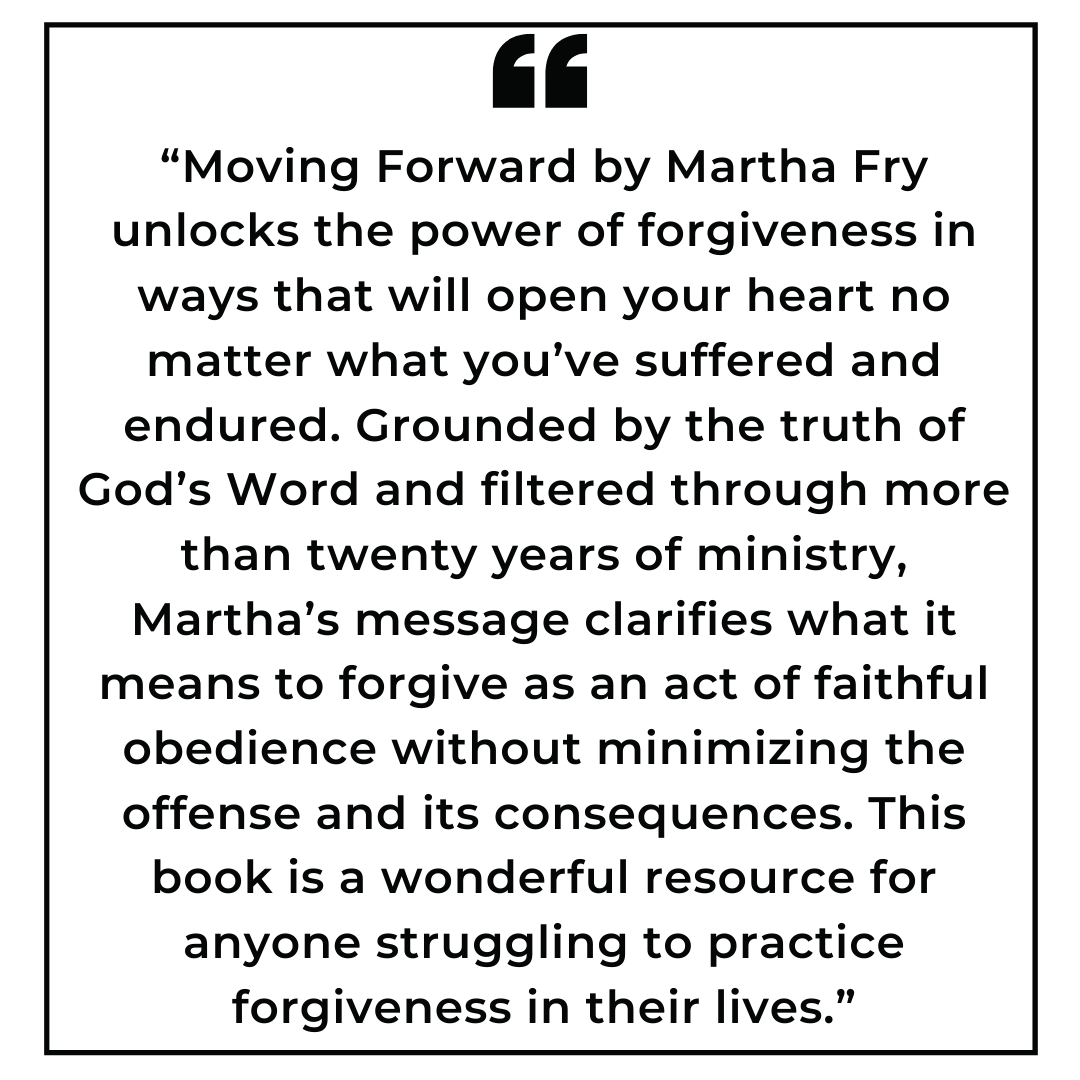 My book Moving Forward is a guide to the freedom found in forgiveness.